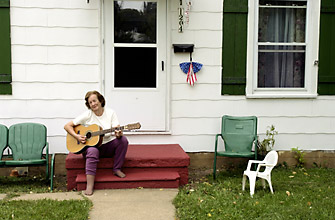 Gladys Young plays guitar on the porch of her Louisiana home. "I'm just practicing," Young said. "I can't really play." Young recently picked the guitar back up after playing for years." You remember Gene Autry?", Young said. "I used to have one of his guitars." |