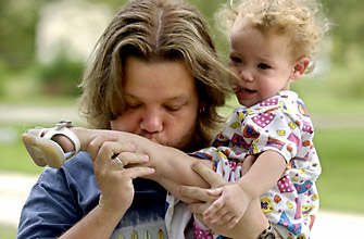 These are the battlers from Trailer 25. Misty Jennings and Dale Buchanan share the home with their daughter 18 month old daughter Samantha and Misty's three other children; Kayla, 5, Chris, 7, and Amy, 9. Money's tight because Misty's income from her night job at the rest home doesn't pay much. Dale is out of work so stays home and looks after the kids when Misty isn't around. The trailer park they live in was an old Japanese POW camp, and perhaps there are still prisoners in this place. Will the children transcend the situation they are in through education or will circumstances keep them from moving on to better things? Misty and Dale love the kids, and in the children's eyes Dale and Misty are heroes-as all our parents are when we are young. Maybe the family's predicament won't improve, but everyone is trying. |