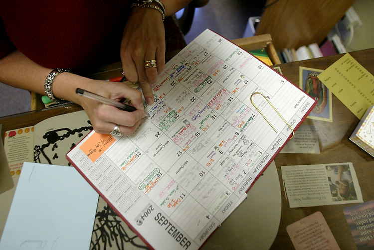 Her calendar is filled with appointments, meetings and reminders. Everything has a color: her husband, Dwayne, is blue; her daughter, Elizabeth, is pink; her son, Ryan is orange.