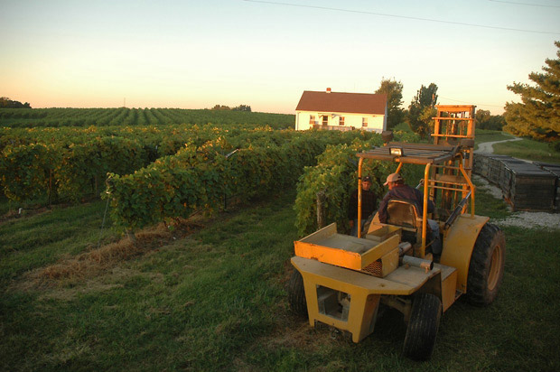 The crew starts working at Stonehill's Winery at sunrise. Omar's schedule changes often, sometimes working day and night shifts within the same week, depending on the harvest and what needs to be done around the vineyards.