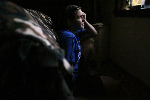 Ashlee Kiderlen sits in her room in Rhineland, Missouri. Unlike most of her friends from Hermann High, she lives in the countryside several miles outside of Hermann.