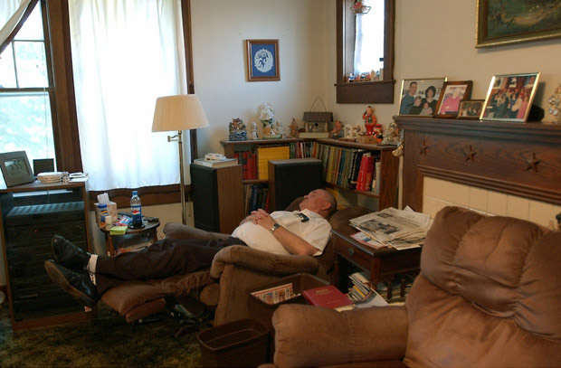 Exhausted from a full day of ministering to his community and full from the lunch his wife makes for him every day puts Pastor Elliot to sleep for a little catnap at home before returning to the church for an evening meeting.