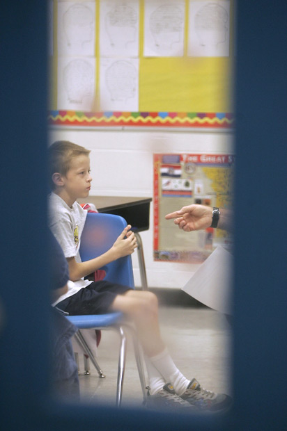 The Herman Middle School principal lectures Jonathan for refusing to obey his teacher. Though very advanced in reading and spelling, he has discipline issues.