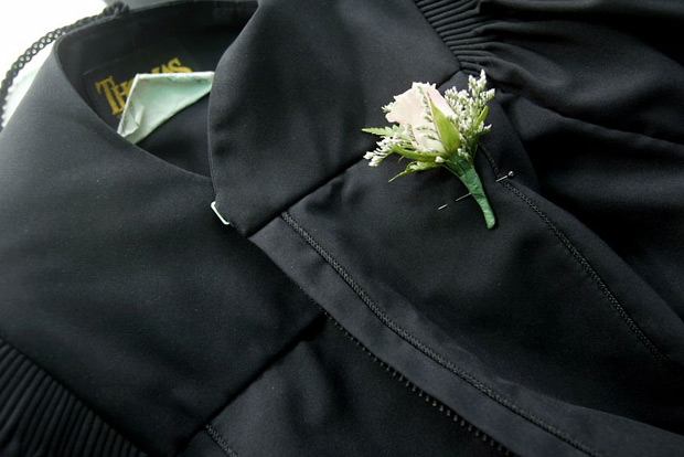 Before presiding over the Krafft wedding at Stone Hill Winery the mother of the bride pinned a rose to Judge Berkemeyer’s robe.