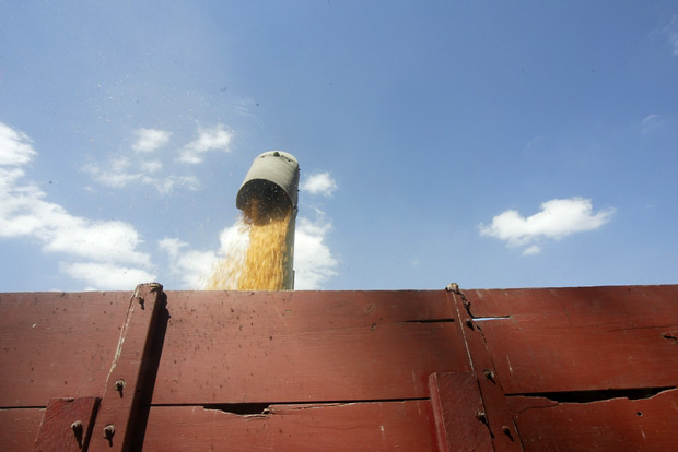 Unloading a combine becomes a routine that's repeated again and again during the long harvest season.