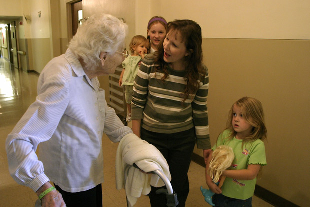 On her way out to River Park, Rilla converses with the a home schooled family who visit the Hospital regularly.