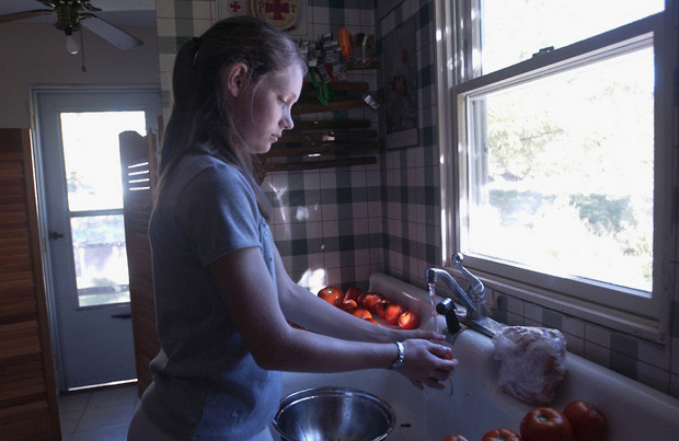 Avery Kent, 14, washes tomatoes in preparation for canning. Each of the Kent children has a special job or chore, and this year, Avery planted a vegetable garden.