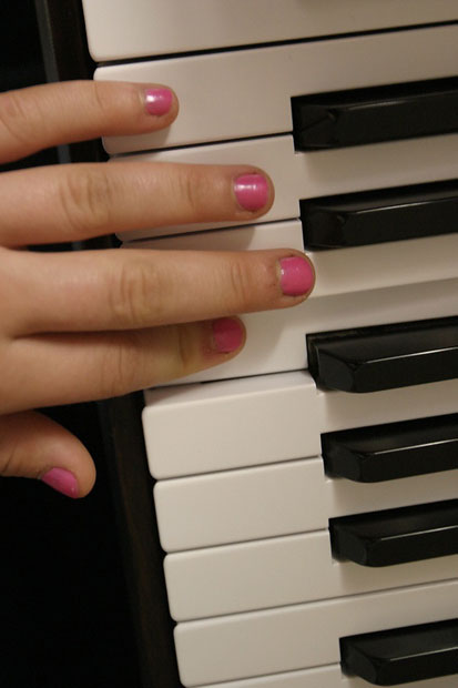 Angela practices the piano in her bedroom. Art and music is an integral part of the children’s education.