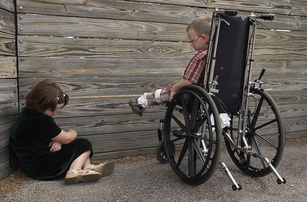 "It's all right," Kane assures classmate Charlie Penrod while consoling her during recess.