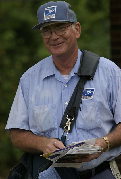 Larry Hostman has a ready smile for all he meets on his daily route.