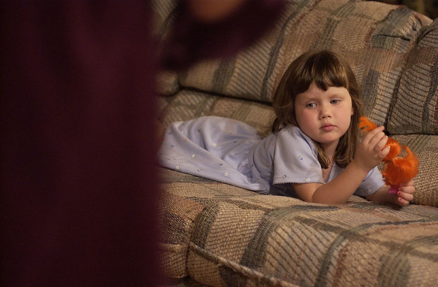 Haley plays with her mermaid as the Thursday night ritual of watching Survivor winds down.