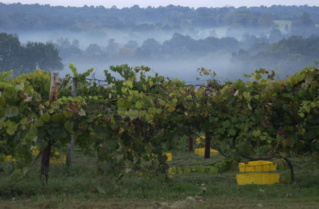 Dawn at the Bias Vineyards and Winery on the first day of the Catawba grape harvest. A major part of next year's business depends on the grapes that will be picked over the coming days.