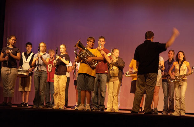 TJ Panula conducts a rehearsal of the "Musical Explosion" performance group at Hermann High School. After making a hit last year, the group if preparing for a new show on October 15 and 17.