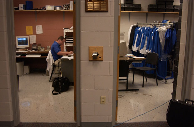 Another day begins. TJ Panula prepares classes before the students arrive.