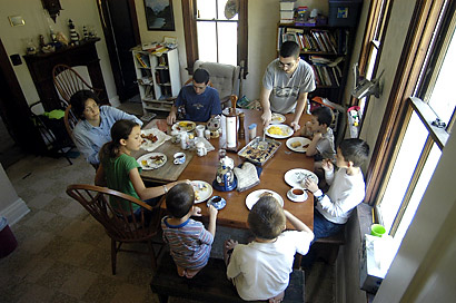 The Monahan family -- parents Mike and Nancy, with their children Matt, Paul, Laura, Mark, Sam, John Peter, Elanor -- live on a farm just south of Hermann. Their busy day is filled with chores and home schooling. Sundays and Wednesday are also church days for them.