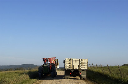 Between Highway H and Highway 100, three miles southeast of Hermann, Missouri, Rohlfing Road winds and rolls through farmland, over creeks and often under a blanket of fog or dust. Cattle graze amidst corn and soybean fields that flank the road named for a family that has farmed there for three generations.